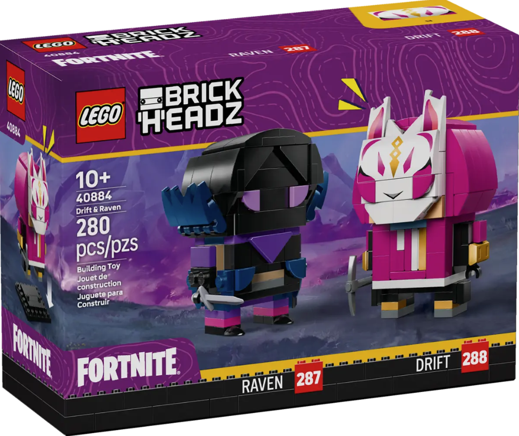 - Video game figures – Create 2 video game collectibles with this LEGO® BrickHeadz™ Fortnite® Drift & Raven Figures building set for kids aged 10 and up