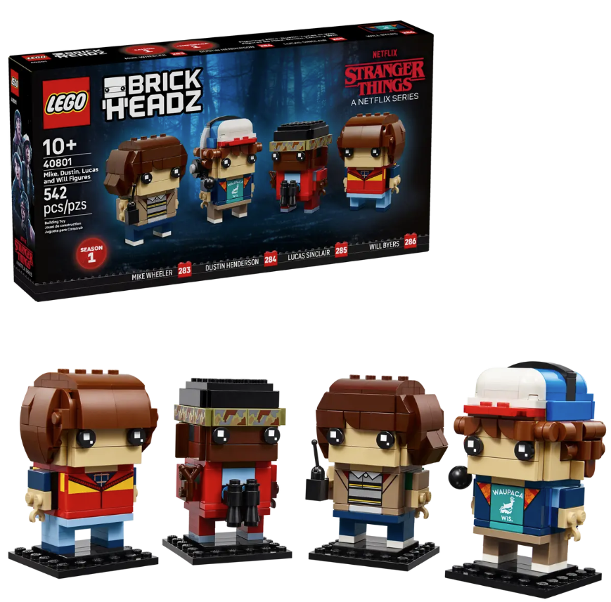 - LEGO® BrickHeadz™ ǀ Stranger Things – Fans can recreate scenes from Stranger Things when they build, play with and display these fun Mike, Dustin, Lucas and Will collectibles